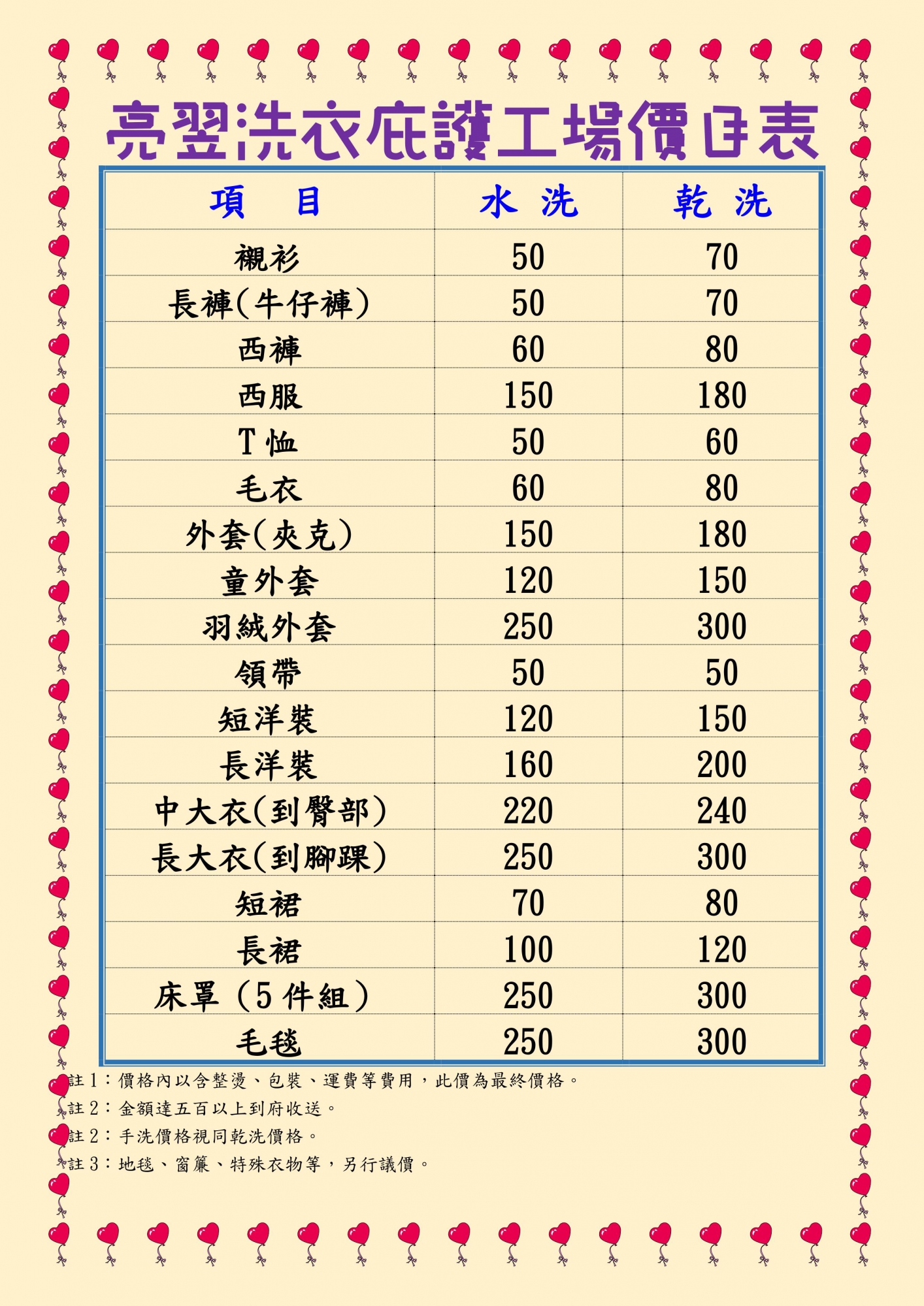 西服、一般衣褲、床寢具、窗簾、椅套、各式織品的洗滌。